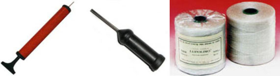 Infladores y pico. Gajos sueltos de Fútbol. Hilos encerados Nº7 y Nº8.